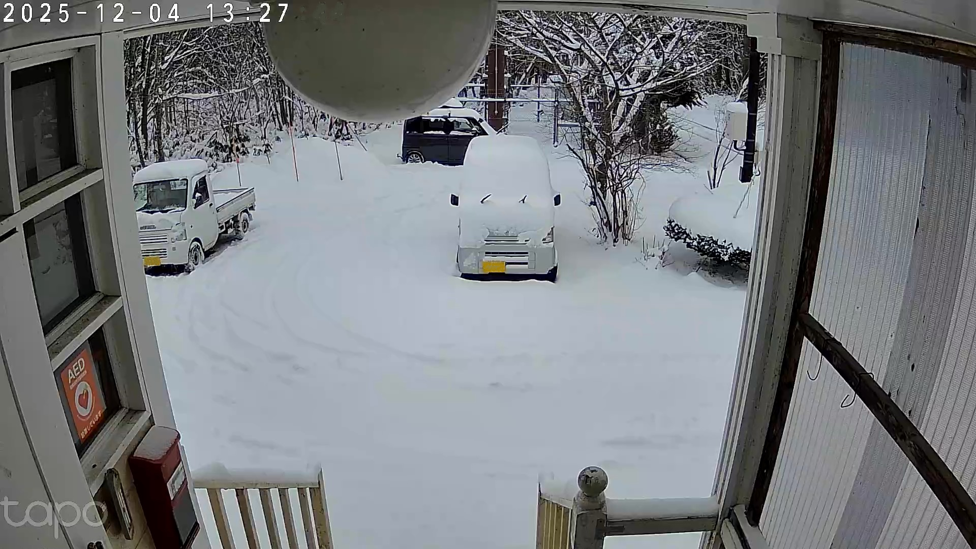 昨日の雨模様から夜には雪に変わり、しゃくなげ平別荘地にもうっすらと雪が積もりました!
