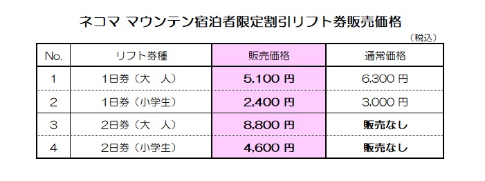 2025-26シーズンの宿泊者限定割引リフト券販売のお知らせ